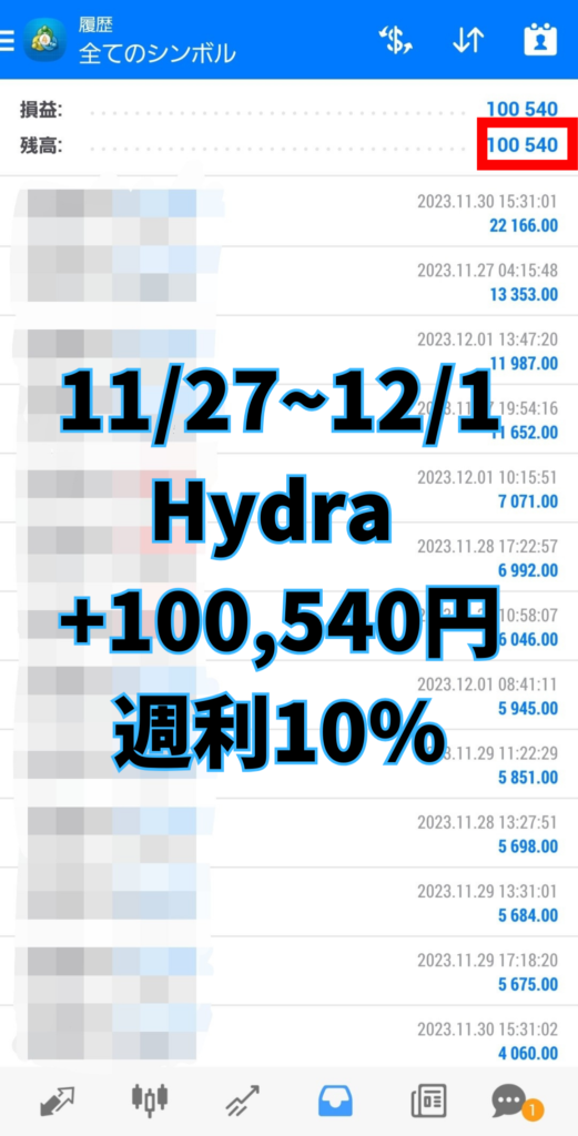 Hydra(ヒドラ)の週報結果